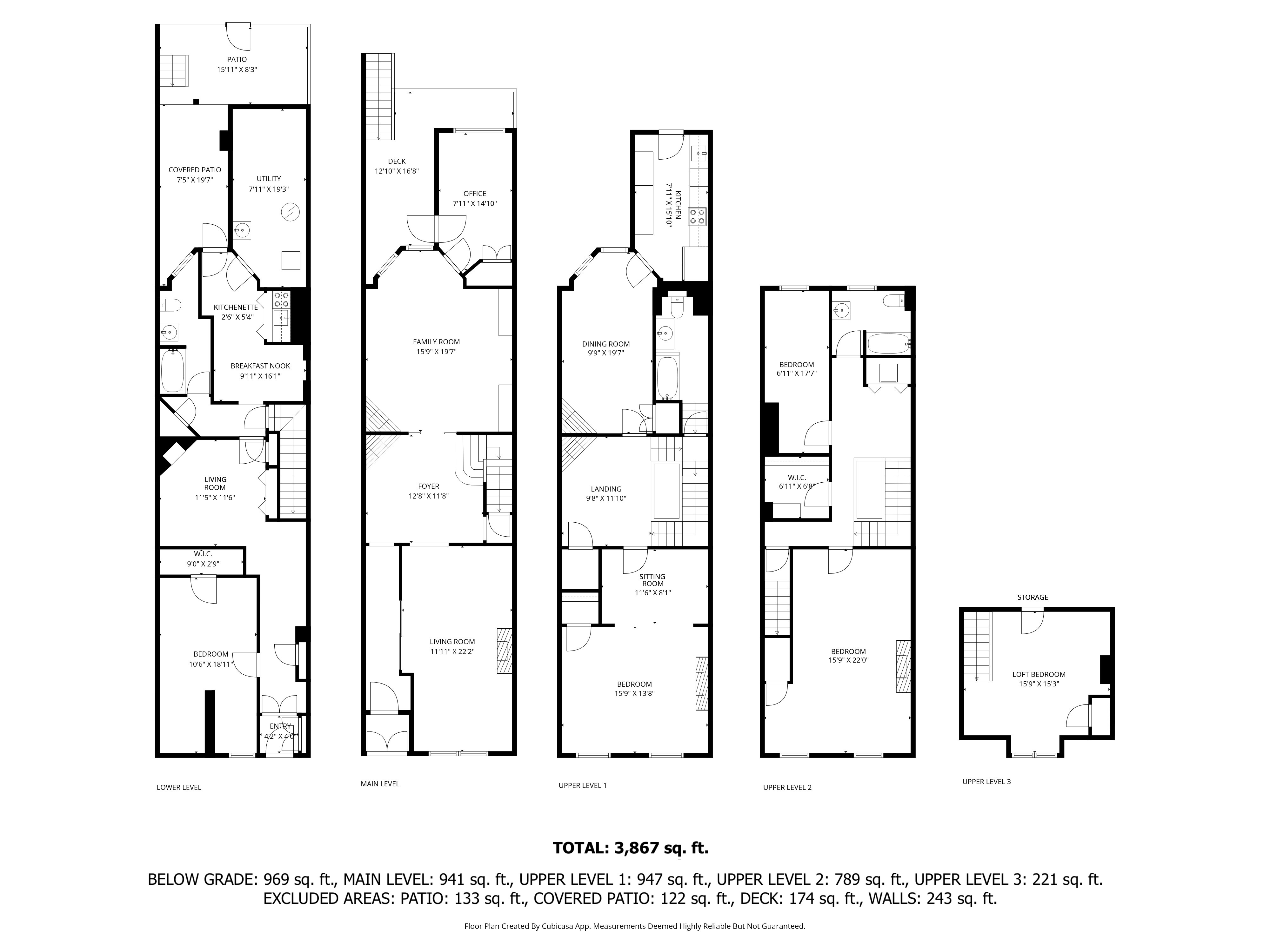 Offering three levels of living space above the lower level plus a fourth-floor loft, the layout provides flexibility for bedrooms, workspace, or potential access to a future roof deck. The main level includes formal living and dining rooms and a rear office. The upper levels offer multiple bedrooms, sitting areas, and full baths. The lower level, with both front and rear entries, may function as extended living space or a separate apartment. Outdoor features include a private rear garden and secure parking for two cars.