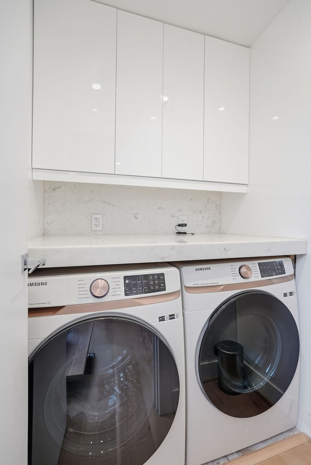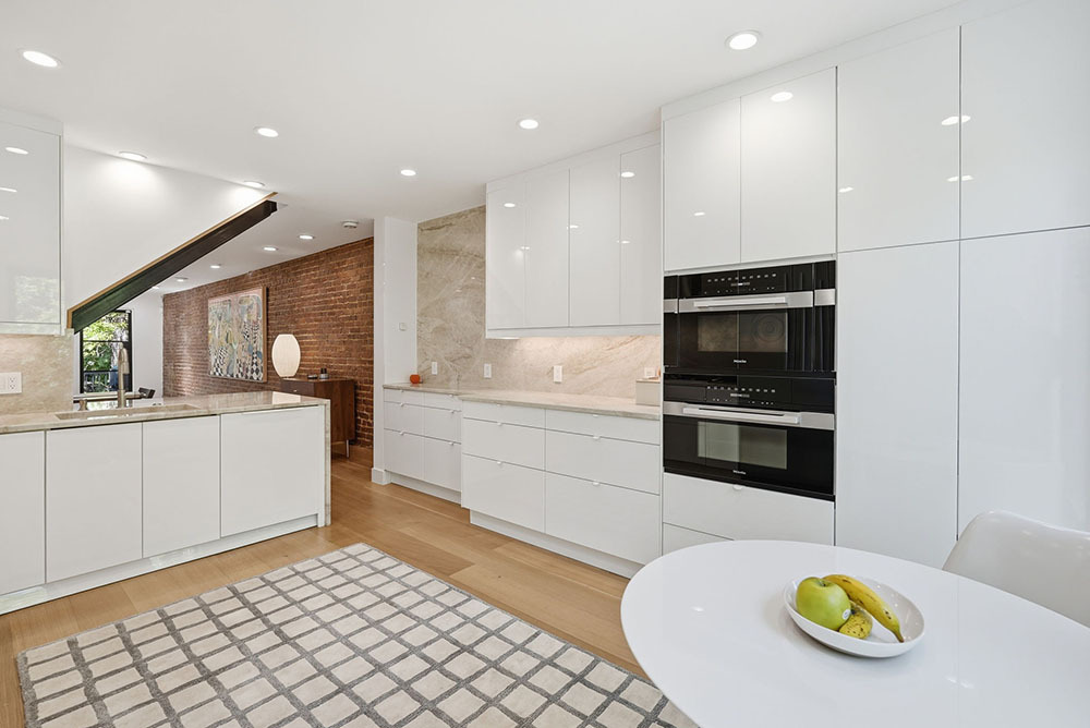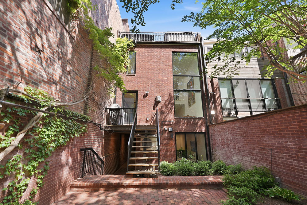 Beyond a generous private courtyard, the carriage house offers three garage spaces at grade and two fully renovated one-bedroom residences above, each finished with wide plank French white oak floors, high-end kitchens, and designer baths. This structure alone is a rarity within Dupont Circle.